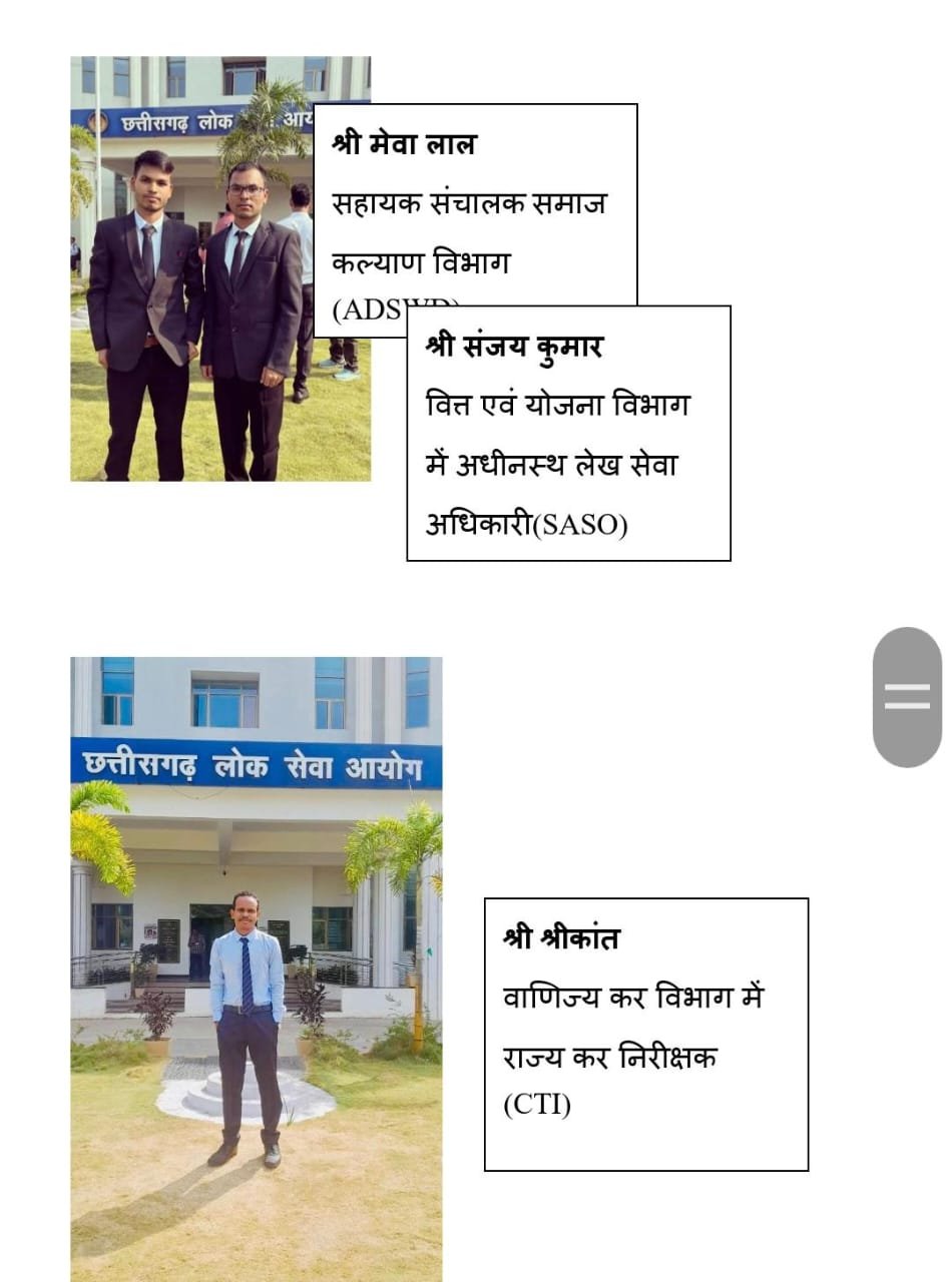 आदिवासी विकास विभाग जिला कोरबा की ओर से तीनों चयनित युवाओं उनके परिवारों एवं छात्रावास प्रबंधन को हार्दिक बधाई एवं शुभकामनाएँ। विभाग को आशा है कि भविष्य में भी छात्रावास क अन्य विद्यार्थी निरंतर उत्कृष्ट प्रदर्शन कर जिले, समुदाय एवं राज्य का गौरव बढ़ाएंगे।