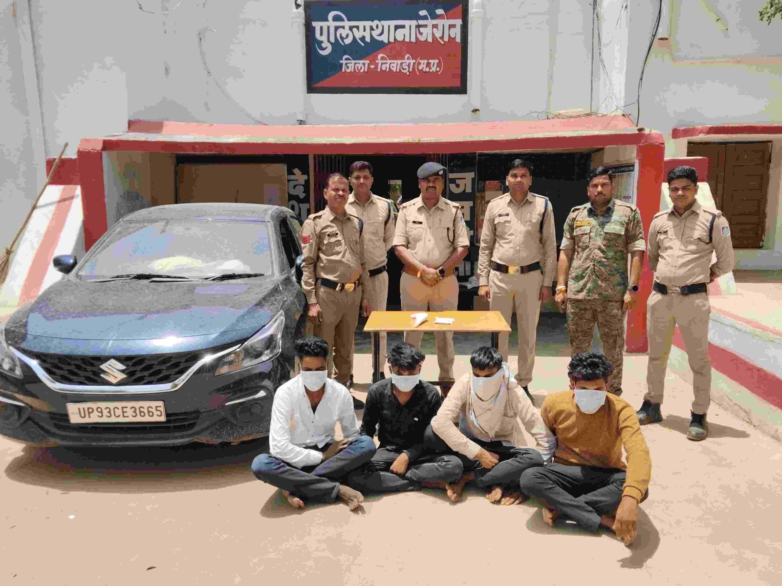 श्रीमान पुलिस अधीक्षक महोदय डॉ. रायसिंह नरवरिया के निर्देशन में एवं अतिरिक्त पुलिस अधीक्षक महोदय श्रीमती ज्योति ठाकुर व अनुविभागीय अधिकारी महोदय (पुलिस) श्री अतुल सोनी के मार्गदर्शन में आरोपियों की तलाश पतारसी हेतु टीम गठित की जाकर रवाना किया गया जो कल दिनांक 17/05/25 को मुखबिर द्वारा सूचना प्राप्त होने पर आरोपीगण 01.उमेश वर्मा पिता रामकिशन वर्मा उम्र 24 साल निवासी ग्राम व थाना उदगुवां जिला दतिया, रोहित पिता देवीदयाल प्रजापति उम्र 23 साल नि. आरा मशीन सिमरावारी बीएचईएल थाना बबीना जिला झांसी , अरविन्द केवट पिता सुरेश केवट उम्र 19 साल निवासी धरमपुरा थाना कोतवाली जिला निवाड़ी, 04. विक्रम केवट पिता ठाकुरदास केवट उम्र 19 साल निवासी धरमपुरा कोतवाली जिला निवाड़ी को गिरफ्तार किया जाकर सूचना परिजन को दी गई ।