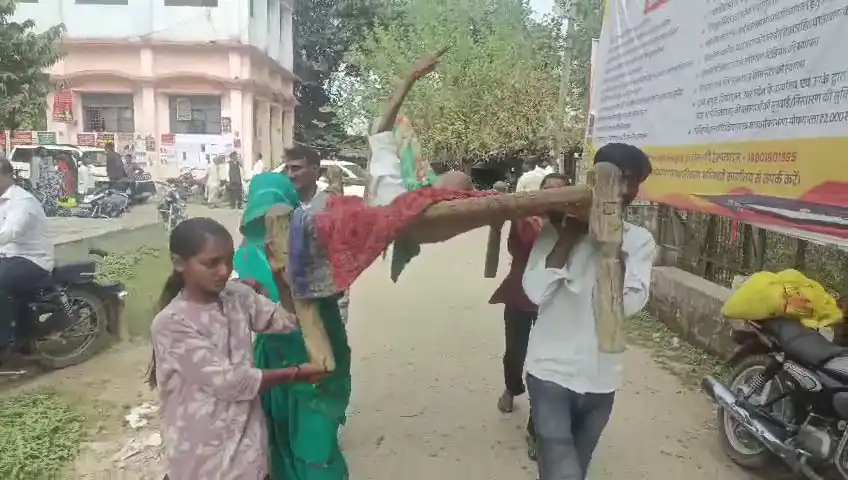रोज की तरह मंगलवार को कौशांबी की चायल तहसील में चहल-पहल दिख रही थी. वकीलों के चैंबरों में भीड़ जमा थी. इसी दौरान तहसील में एक तस्वीर ऐसी सामने आई जिसे देखकर पहली नजर में शायद लोगों ने सोचा होगा कि यह लोग गलती से अस्पताल के बजाय तहसील आ गए हैं. लेकिन चारपाई कंधे पर लादकर लाने वाले लोग तहसील ही आए थे.
