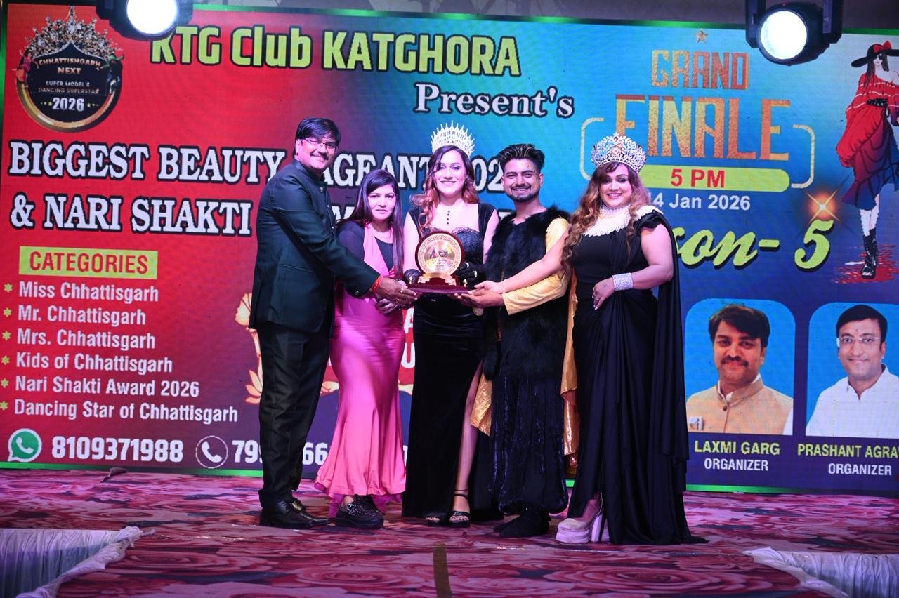 बिलासपुर/स्वराज टुडे: KTG क्लब कटघोरा द्वारा प्रस्तुत छत्तीसगढ़ नेक्स्ट सुपर मॉडल सीजन-5 का भव्य आयोजन बिलासपुर में किया गया। इस प्रतिष्ठित फैशन शो के आयोजक लक्ष्मी गर्ग रहे, जबकि शो डायरेक्टर की जिम्मेदारी किरण मैम ने निभाई। कार्यक्रम में छत्तीसगढ़ के विभिन्न जिलों से एवं अन्य राज्यों से आए प्रतिभाशाली प्रतिभागियों ने भाग लेकर अपनी प्रतिभा का शानदार प्रदर्शन किया।