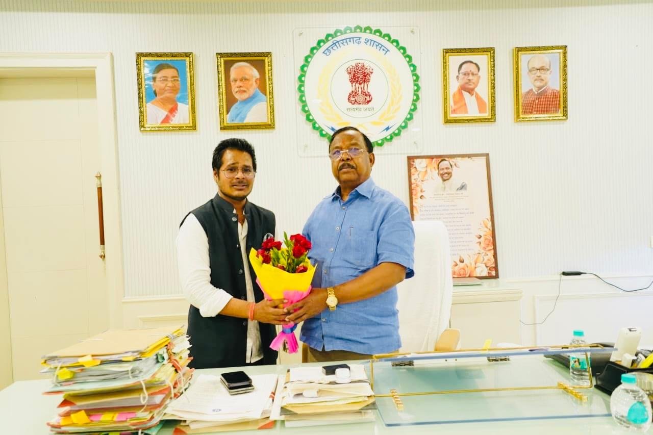 सक्ती/स्वराज टुडे: क्षेत्र के विकास कार्यों को गति देने के उद्देश्य से राजा धर्मेंद्र सिंह ने प्रदेश के कृषि विकास विभाग, आदिम जाति कल्याण विभाग छत्तीसगढ़ शासन मंत्री श्री राम विचार नेताम जी से सौजन्य मुलाकात की। इस दौरान उन्होंने क्षेत्र की जनता की अपेक्षाओं और समस्याओं पर विस्तृत चर्चा की।