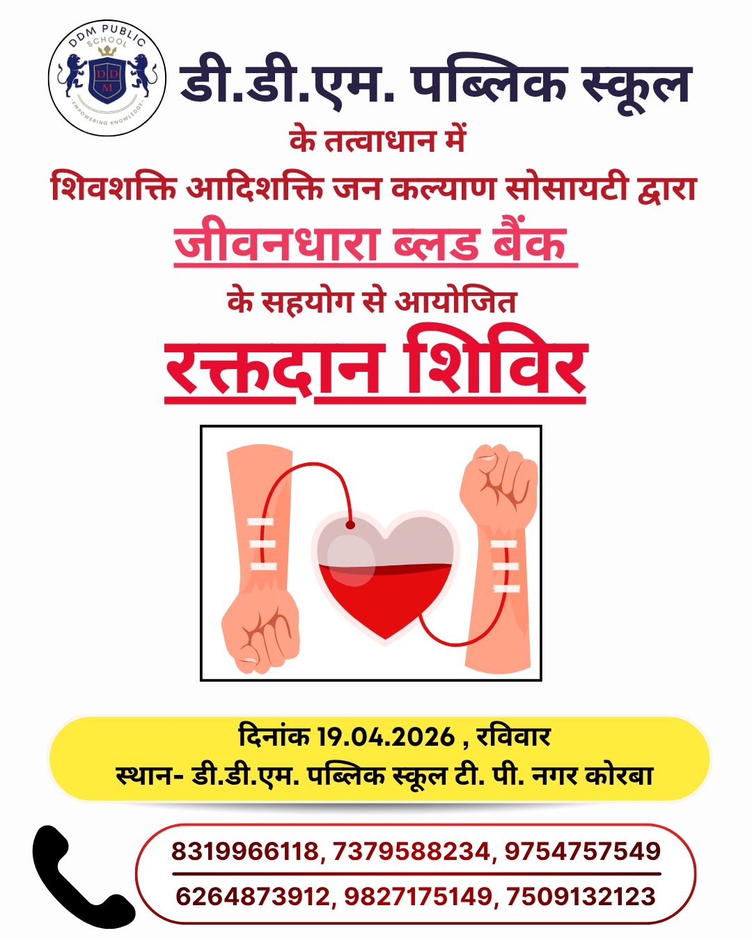 कोरबा/स्वराज टुडे: दिनांक 19 /4 /2026 को सुबह 10:00 बजे से डीडीएम पब्लिक स्कूल के तत्वावधान में