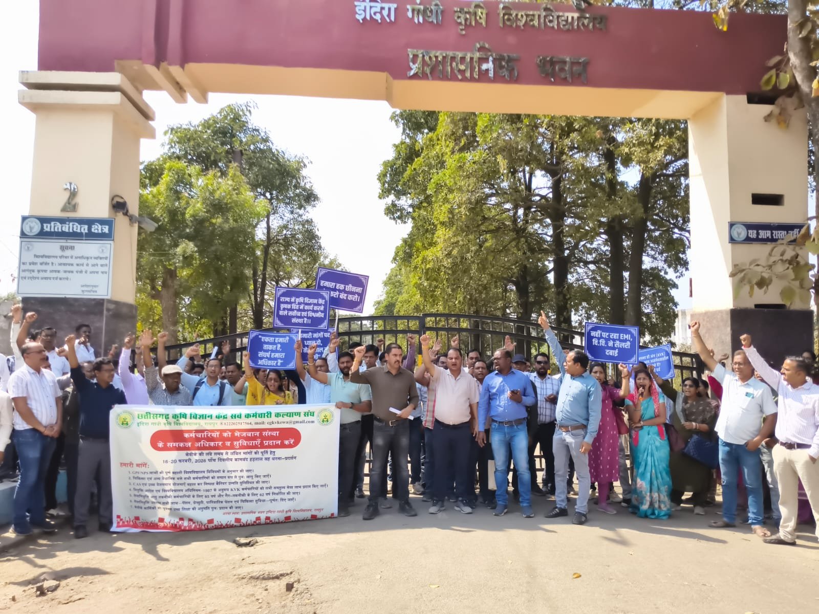 रायपुर/स्वराज टुडे: छत्तीसगढ़ कृषि विज्ञान केंद्र सर्व कर्मचारी कल्याण संघ द्वारा KVK अधिकारियों एवं कर्मचारियों की वेतन-विसंगति, लंबित देयकों एवं सेवा-लाभों की बहाली की मांग को लेकर 16 से 20 फरवरी 2026 तक आयोजित पाँच दिवसीय कामबंद हड़ताल सह धरना-प्रदर्शन का आज तृतीय दिवस रहा।