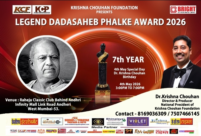 मुम्बई/स्वराज टुडे:  कृष्णा चौहान फाउंडेशन (केसीएफ) के संस्थापक डॉ. कृष्णा चौहान अपने जन्मदिन (4 मई) के अवसर पर लीजेंड दादा साहेब फाल्के अवार्ड 2026 समारोह (7वें सीजन) का आयोजन मुम्बई महानगर के प्रसिद्ध उपनगर अंधेरी पश्चिम स्थित रहेजा क्लासिक क्लब में करेंगे। इस आशय की जानकारी डॉ कृष्णा चौहान ने प्रेस विज्ञप्ति जारी कर मीडिया को दी है।