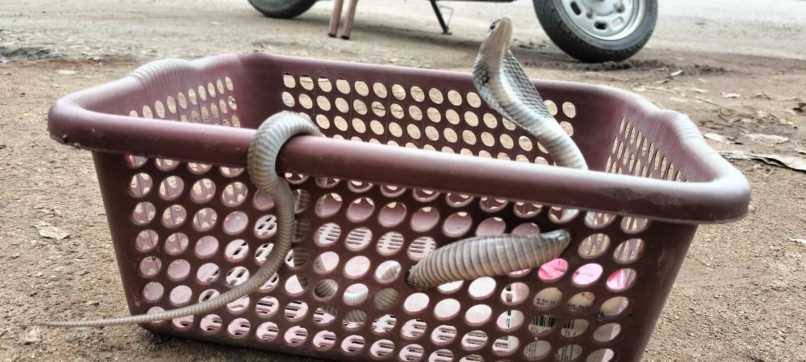 कोरबा/स्वराज टुडे: एक दुकानदार उस समय डर से कांप उठा जब एक कोबरा फन फैलाए टोकरी में दिखाई दिया वही आवाज करने लगा, दुकानदार को यह दृश्य सामान्य लगा पर जब हिम्मत कर उस प्लास्टिक के बास्केट को दुकान से बाहर निकाला तो देखा वो कोबरा (नाग) उसमें पूरी तरफ फंसा हुआ था जो आसानी से नहीं निकल सकता था इस बात को समझते देर नहीं लगी फिर आखिकार इसकी सूचना नोवा नेचर संस्था के जितेंद्र सारथी को दिया गया जिस पर सारथी ने थोड़ी देर में टीम को भेजने की बात कही, फिर कुछ देर बाद नोवा नेचर के सचिव मोइज एहमद और बबलू मारवा उस दुकान में पहुंचे और बड़ी सावधानी से प्लास्टिक के बकेट को धार दार हथियार से काटा गया आखिरकार कोबरा सांप निकल पाने में कामयाब हुआ जिसके वजह से उसकी जान बच गई तब जाकर दुकान मालिक ने राहत भरी सांस लिया फिर कोबरा सांप को सुरक्षित प्राकृतिक रहवास जंगल में छोड़ दिया गया।
