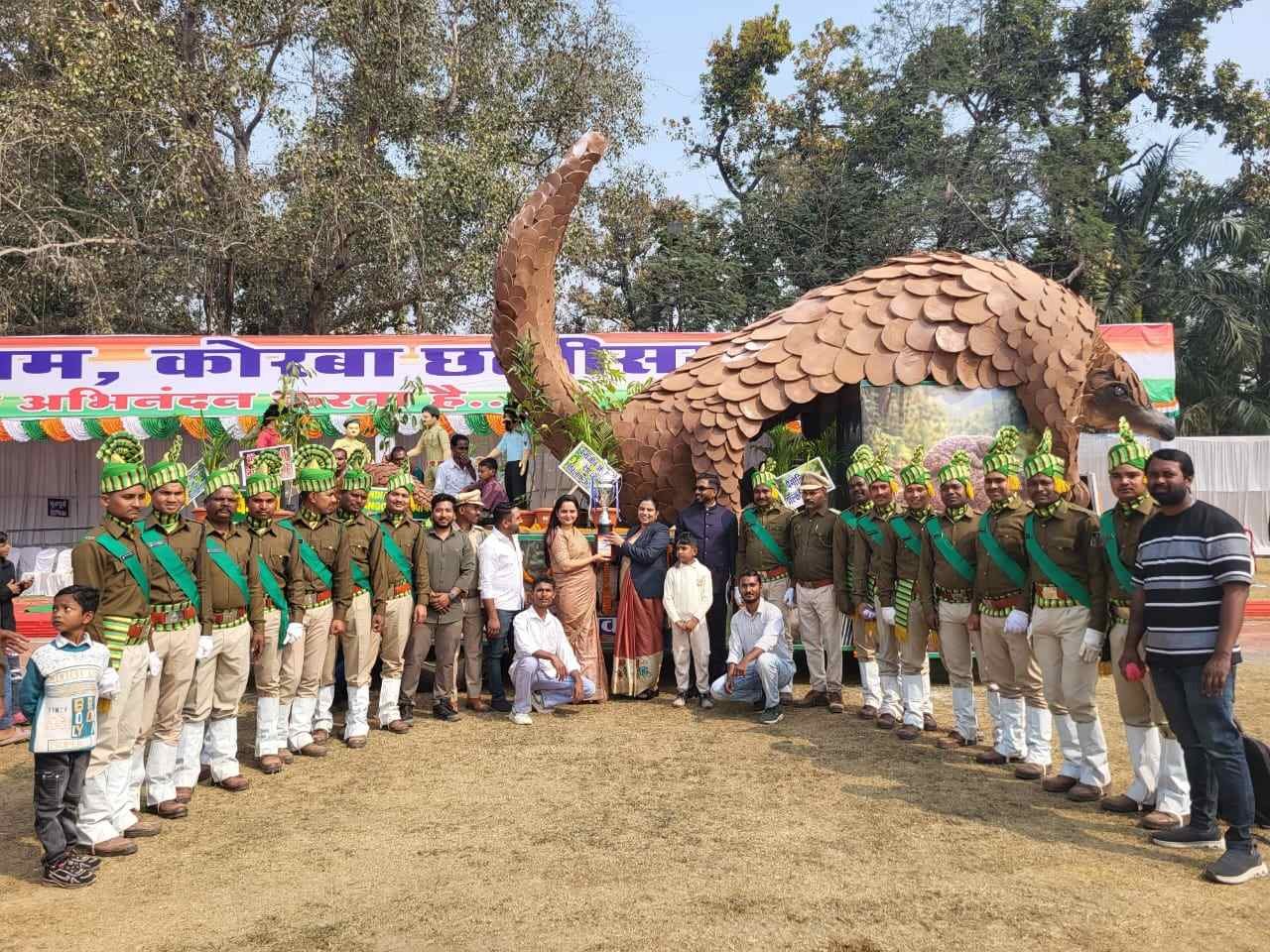 वन विभाग को इस वर्ष दो ट्रॉफी मिलना वन विभाग के डीएफओ प्रेमलता यादव एवं निशांत कुमार के का कुशल मार्गदर्शन एसडीओ आशीष खेलवार एवं सूर्यकांत सोनी के निगरानी में कोरबा रेंजर मृतुन्जय शर्मा, कमलेश कुम्हार,अर्जुन कंवर, जितेंद्र सारथी, सिद्धांत जैन आदि लोगों की विशेष भूमिका रही भारतीय पोंगलिन के झाकी को कुछ दिनों में कड़ी मेहनत से तैयार करना वही प्रोफेशनल परेड में उत्कृष्ट स्थान आने के लिए लगातार रिहल्सल करना सफल रहा, जिसके लिए सभी बधाई के पात्र रहे।