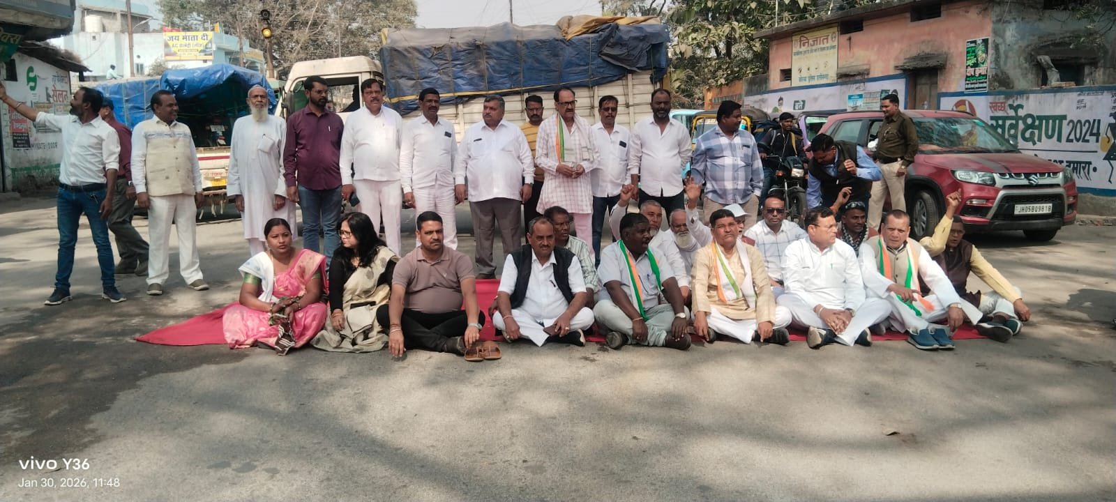 राष्‍ट्रपिता महात्‍मा गांधी जी की पुण्‍यतिथि पर कोतवाली के पास कांग्रेस जनों ने मनरेगा बचाओ संग्राम और धान खरीदी की तारीख बढ़ाने को लेकर सड़क पर बैठकर किया प्रदर्शन