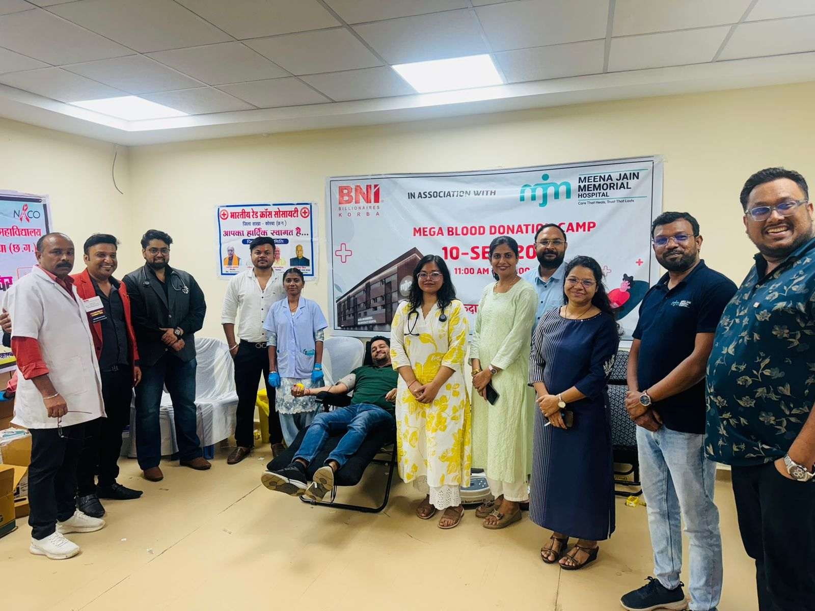 कोरबा/स्वराज टुडे: समाज सेवा और मानवता की दिशा में एक सराहनीय पहल करते हुए एमजेएम हॉस्पिटल, टीपी नगर कोरबा में बीएनआई बिलियोनायर्स के सहयोग से रक्तदान शिविर का सफल आयोजन किया गया। विशाल मेगामार्ट के सामने स्थित मीना जैन मेमोरियल (MJM) हॉस्पिटल में बुधवार 10 सितम्बर 2025 को आयोजित इस शिविर में सुबह 11 बजे से शाम 5 बजे तक बड़ी संख्या में दाताओं ने उत्साहपूर्वक रक्तदान किया।