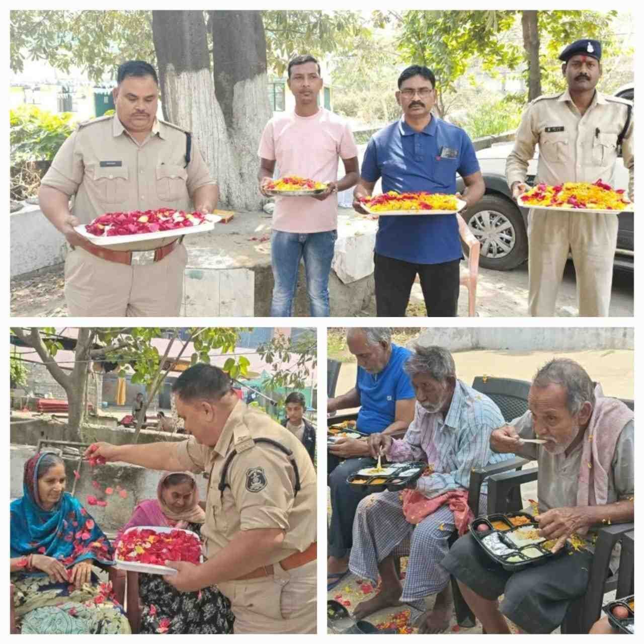 सर्वमंगला पुलिस सहायता केंद्र ने प्रशांति वृद्धाश्रम में वृद्धजनों के साथ खेली फूलों की होली, वृद्धजनों का लिया आशीर्वाद