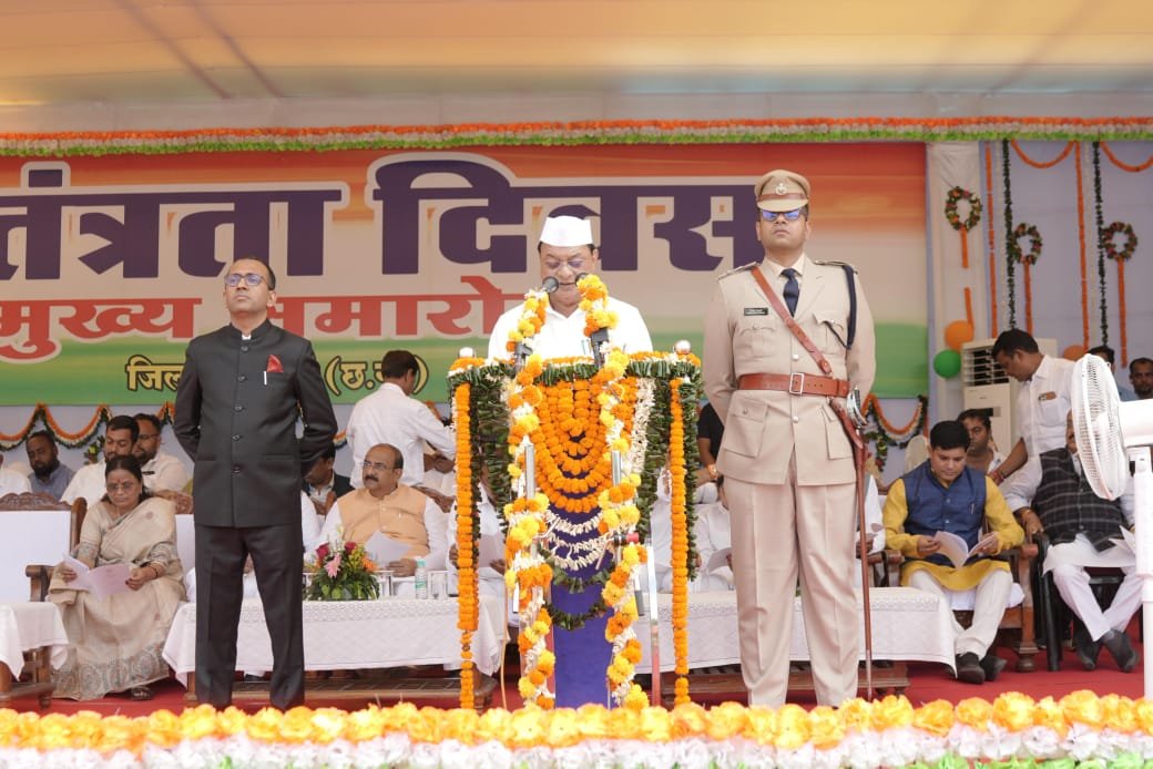 कोरबा में स्वतंत्रता दिवस मुख्य समारोह में मुख्य अतिथि मंत्री श्री लखनलाल देवांगन ने हजारों नागरिकों की उपस्थिति में प्रातः 9 बजे ध्वजारोहण किया और परेड की सलामी ली। इस अवसर पर राष्ट्रगान प्रस्तुत किया गया। सुरक्षा बलों द्वारा हर्ष फायर किया गया और छत्तीसगढ़ सशस्त्र बल, सीआइ्र्रएसएफ, जिला पुलिस बल, सुरक्षा बल,नगर सेना, वन रक्षक, स्काउट गाइड सीनियर-जूनियर डिवीजनों द्वारा आकर्षक मार्च पास्ट प्रस्तुत किया गया। परेड कमांडरों द्वारा परेड रिपोर्ट प्रस्तुत की गई। मुख्य अतिथि ने परेड का निरीक्षण किया। इस दौरान उनके साथ कलेक्टर श्री अजीत वसंत एवं पुलिस अधीक्षक श्री सिद्धार्थ तिवारी उपस्थित थे। उन्होंने अनेकता में एकता के प्रतीक गुब्बारे आकाश में छोड़े।
