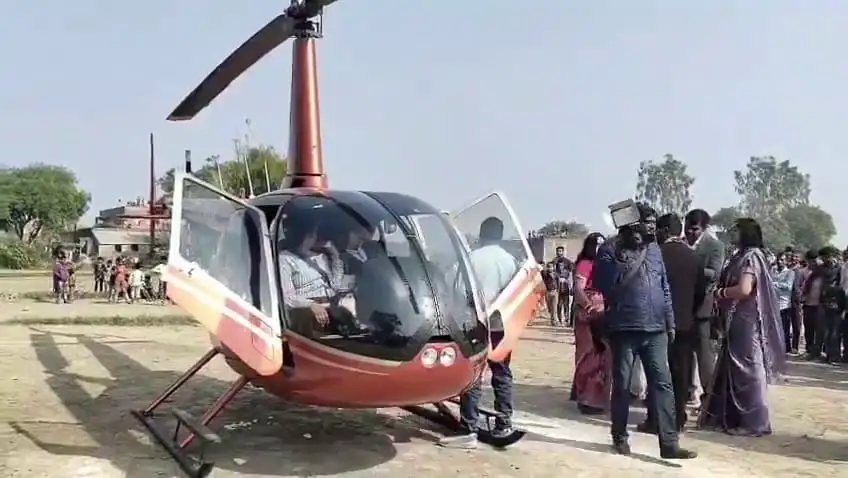 कानपुर देहात के रसूलाबाद नगर पंचायत के गौतम बुद्ध नगर वार्ड में शुक्रवार की सुबह किसी फिल्मी सेट से कम नहीं थी. आसमान में गड़गड़ाहट हुई और अचानक गांव के एक खेत पर एक हेलिकॉप्टर ने लैंड किया. यह हेलिकॉप्टर किसी राजनेता या हस्ती के लिए नहीं, बल्कि गांव के साधारण किसान अमर सिंह यादव की बेटी प्रतिमा की विदाई के लिए आया था. दुल्हन प्रतिमा खुद एक सॉफ्टवेयर इंजीनियर हैं. जब वह अपने दूल्हे विकास के साथ हेलिकॉप्टर में बैठीं, तो न केवल नाते-रिश्तेदार, बल्कि पूरे गांव की आंखें ख़ुशी और गर्व से नम हो गईं.