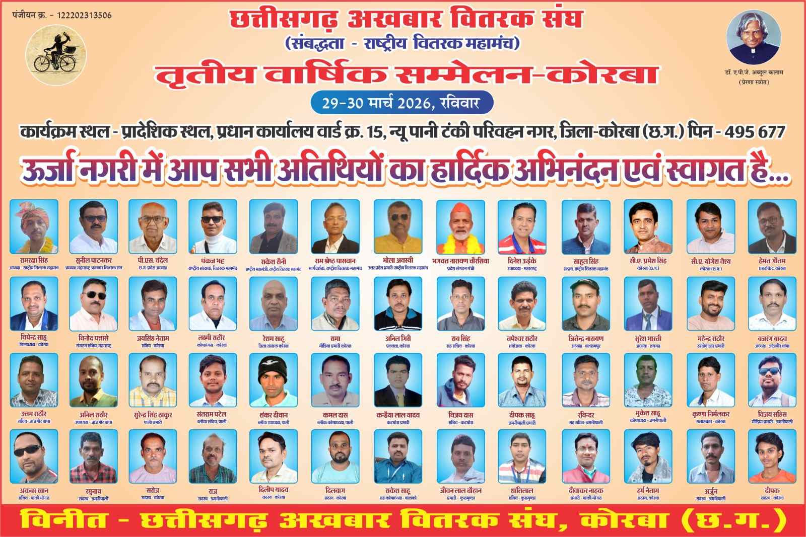 छत्तीसगढ़ अखबार वितरक संघ के कोरबा जिलाध्यक्ष विपेन्द्र साहू ने जिले के सभी ब्लाक पदाधिकारियों एवं कार्यकर्ताओं को कार्यक्रम में शामिल होने का आग्रह किया है, ताकि संघ को और मजबूत बना सकें एवं अखबार वितरकों के अधिकार पाने के अभियान को और मजबूती दे सकें।