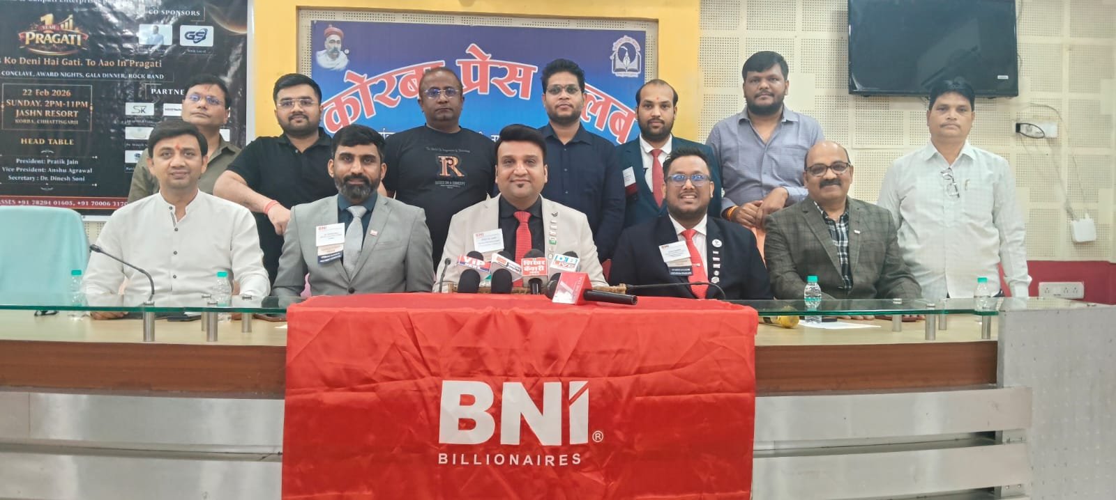 कोरबा/स्वराज टुडे: कोरबा शहर के उद्यमियों और व्यापार जगत के लिए एक बड़ी सौगात लेकर आ रहा है BNI Billionaires। अपने प्रथम स्थापना वर्ष के उपलक्ष्य में चैप्टर द्वारा 22 फरवरी 2026 को जश्न रिसोर्ट में दोपहर 3 बजे से रात 11 बजे तक भव्य कॉर्पोरेट बिज़नेस कॉन्क्लेव “प्रगति 2026” का आयोजन किया जाएगा।