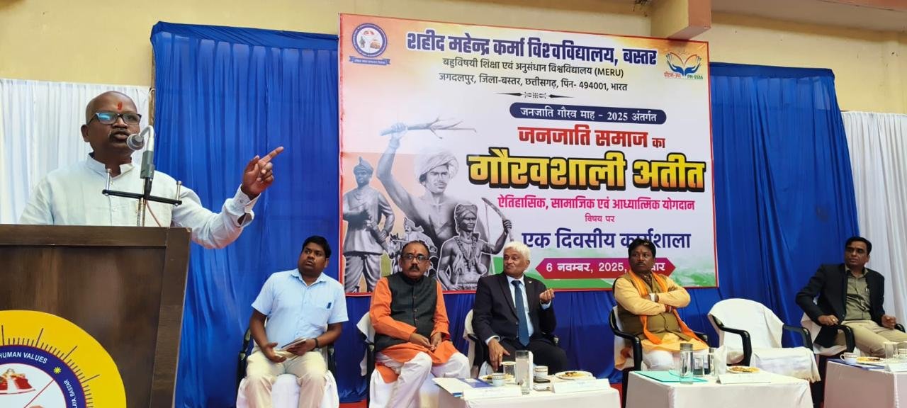 गुरूवार को शहीद महेंद्र कर्मा विश्वविद्यालय में इस विषय को लेकर एक दिवसीय कार्यशाला का आयोजन किया गया। जनजातीय समाज का गौरवशाली अतीत एवं उनके ऐतिहासिक, सामाजिक एवं आध्यात्मिक योगदान विषय पर आयोजित इस कार्यक्रम में सांसद महेश कश्यप, कुलपति प्रो एमके श्रीवास्तव, वनवासी विकास समिति के प्रांत संगठन मंत्री रामनाथ कश्यप एवं विवि कार्यपरिषद् के सदस्य राजीव शर्मा उपस्थित थे।
